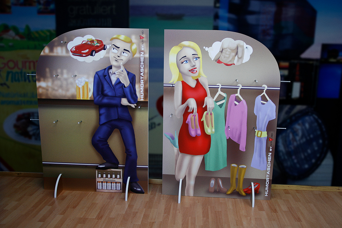 Wir fertigen konturgeschnittene Aufsteller nach Ihren Wünschen und Anforderungen. Verschiedenste Materialien stehen je nach Anwendungszweck zur Auswahl. Neben Pappfiguren, Aufstellern aus Wabenplatte oder Aluverbundplatte, stehen verschiedenste Kunstoffe zur Auswahl. Wir beraten Sie gern, um die perfekte Lösung für Ihren Anwendungsfall zu finden.